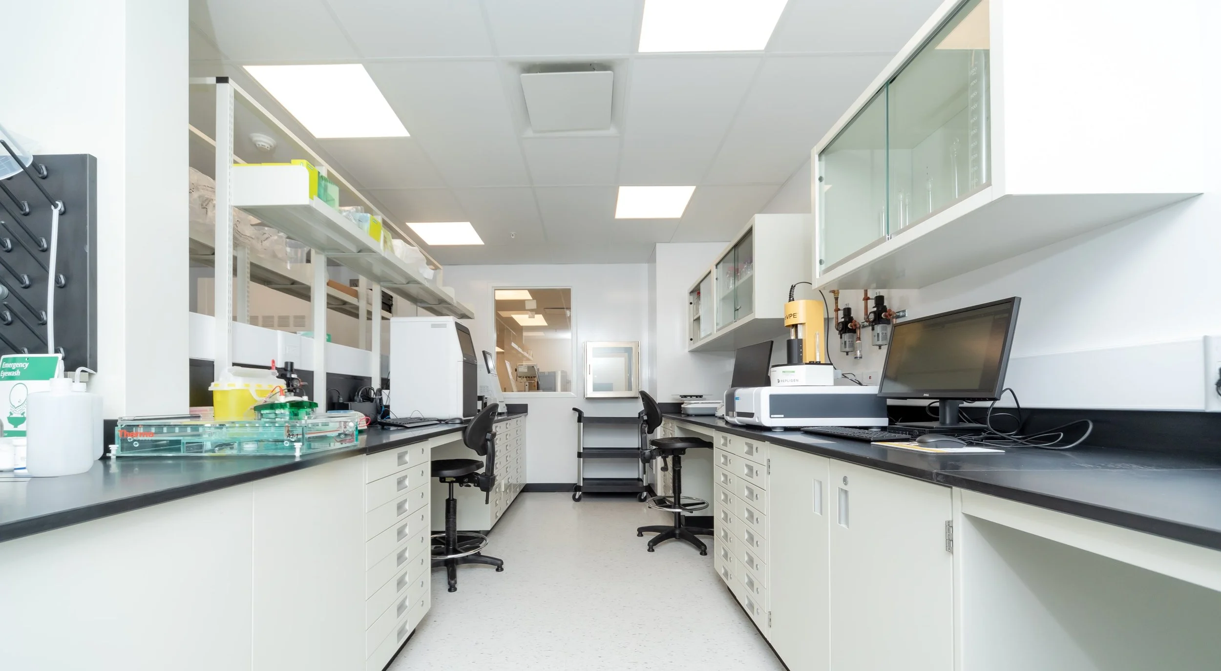 Designed and delivered by G architects, the facility enables upstream and downstream process development, GMP QC testing, analytical assays, and scale-up to 200L for pre-clinical and Phase I supply. The retrofit included targeted structural upgrades to accommodate new Air Handling Units and lab infrastructure, ensuring environmental precision and operational flexibility. Custom benching, bio-safety cabinetry, and modular systems were tailored to meet Eurofins Alphora’s exacting standards. The lab's design supports safe, adaptable use, integrating advanced mechanical, electrical, and IT systems while prioritizing cost-effective, high-impact upgrades. With added biologics capacity complementing Eurofins Alphora’s expertise in APIs and HPAPIs, the facility enhances integrated antibody-drug conjugate development.