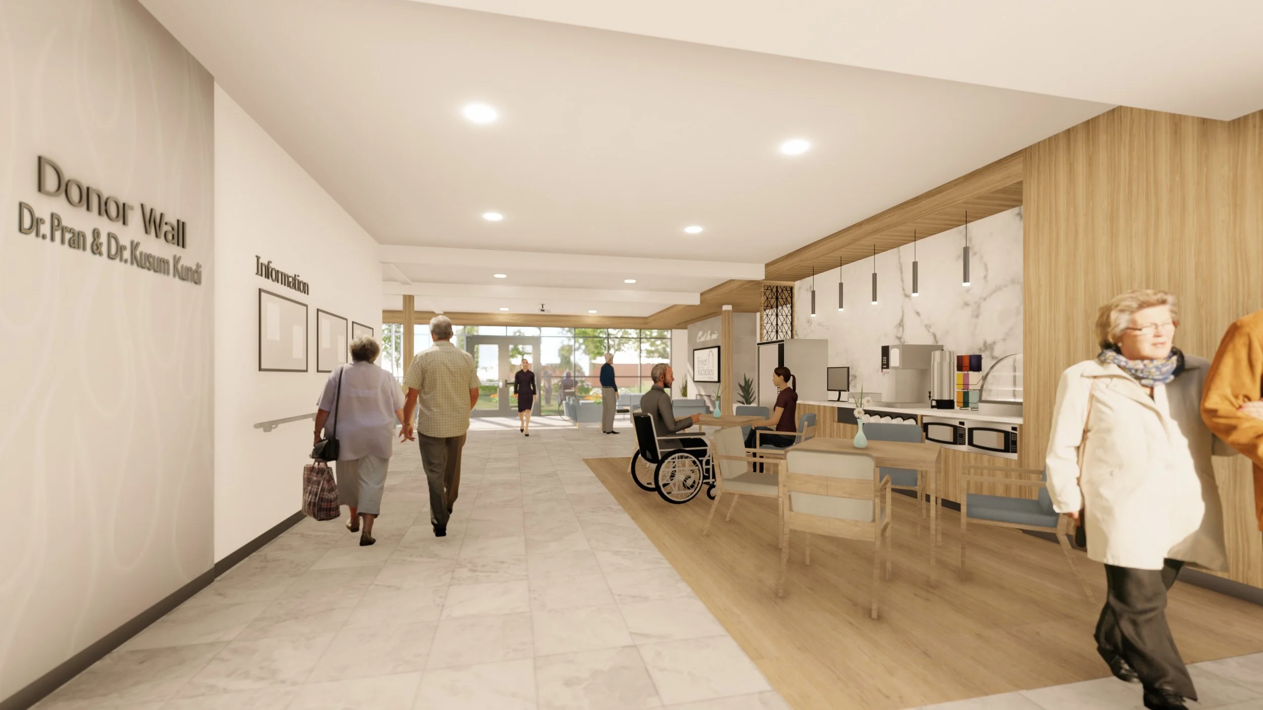 The new Foyer Richelieu will be a 128-bed Long-term Care Home, and includes a 10-bed Hospice, which will be run by Hospice Niagara, and an enhanced ground floor community space, which includes a Catholic Chapel, multipurpose room, celebration room, and Bistro.