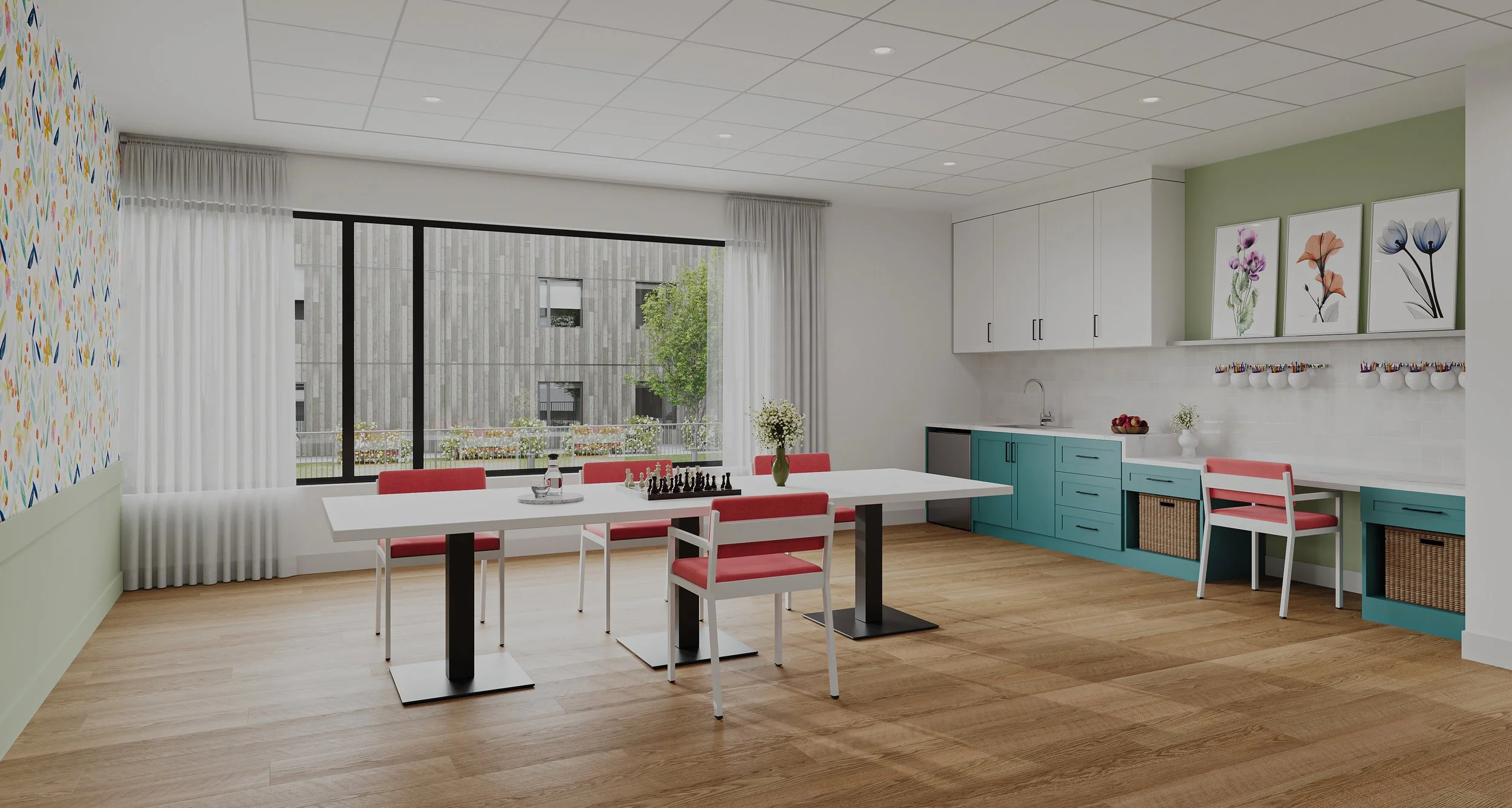 The Maxville Manor Long-Term Care Home project involves redeveloping an existing one-story building and adding a two-story structure, spanning 87,000 square feet, with a total capacity of 160 beds and 82 parking spaces. Currently in Design Development, the facility will have an enhanced IPAC design and is intended to be multi-use, inclusive of adult day programs, long-term care, community programs, and housing. G is leveraging an Integrated Design Approach, conducting extensive stakeholder consultations and working with a full team of consultants early on in the process to determine the feasibility of the phasing plan. Specifically, G is collaborating with a Construction Manager throughout pre-construction services to improve overall project phasing, constructability and cost estimating. The design team is also working closely with the MLTC/Authority on complex phasing plans to ensure resident safety is paramount throughout construction.