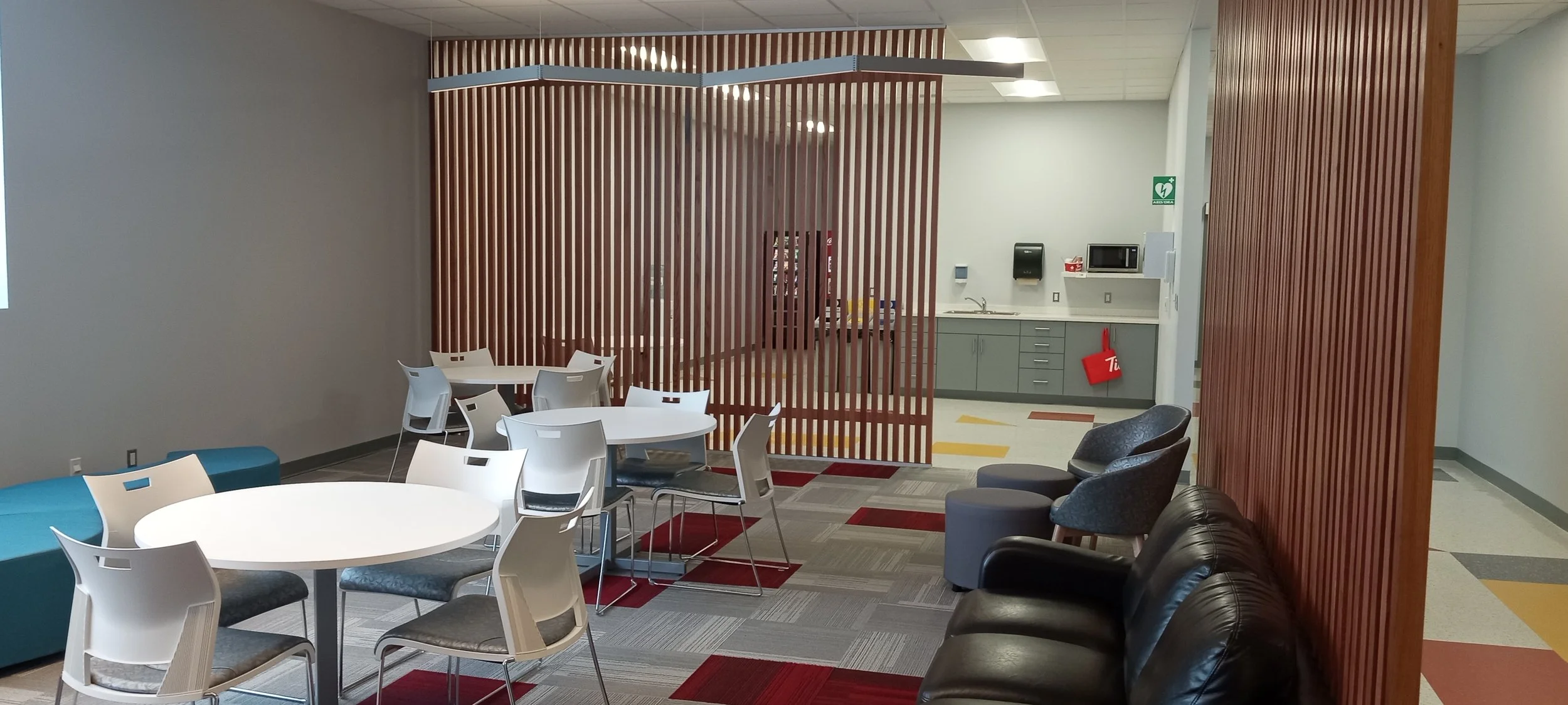 In 2023, G, was engaged in the unique accelerated schedule design project for Northern College’s 1,313 square meter Downtown Satellite Campus. This project included the full demolition and transformation of a previous call centre into a college campus that included 4 – 40 student classrooms complete with both free standing and fixed custom millwork. The project also integrated Timmins employment agency, Employment Options as a separate secured service.