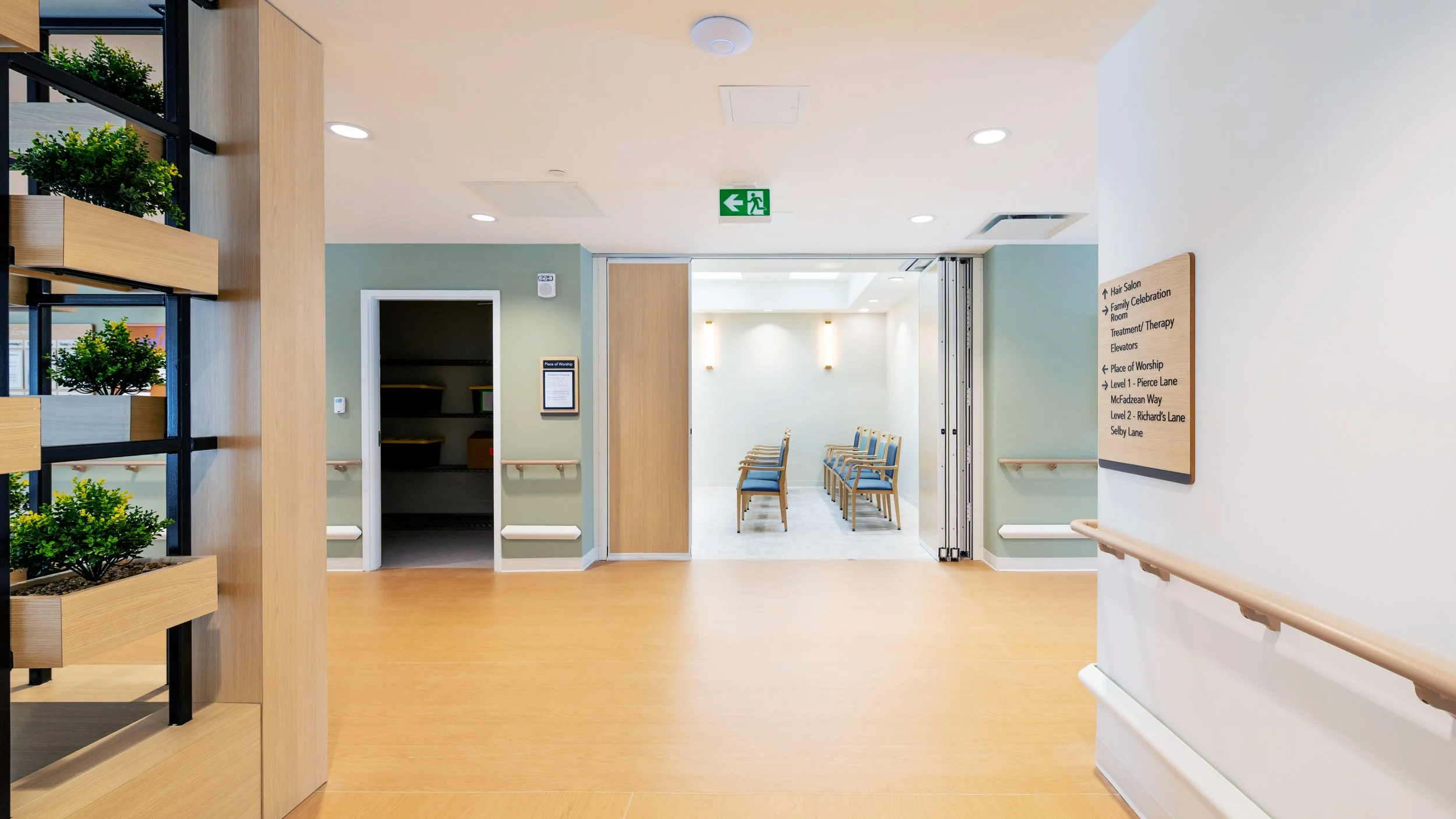 Delivered within a for-profit operating model, the redevelopment demonstrates how strategic design can modernize an aging long-term care home to meet contemporary standards of safety, accessibility, and resident-centred care.